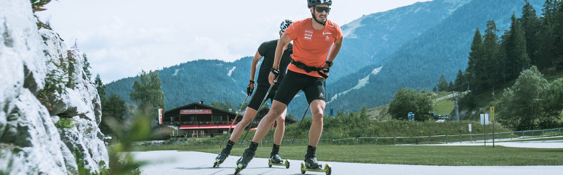 - Auf der Skirollerstrecke besteht Helmpflicht. Zur eigenen Sicherheit wird zusätzlich empfohlen eine entsprechende Sicherheitsausrüstung zu tragen.